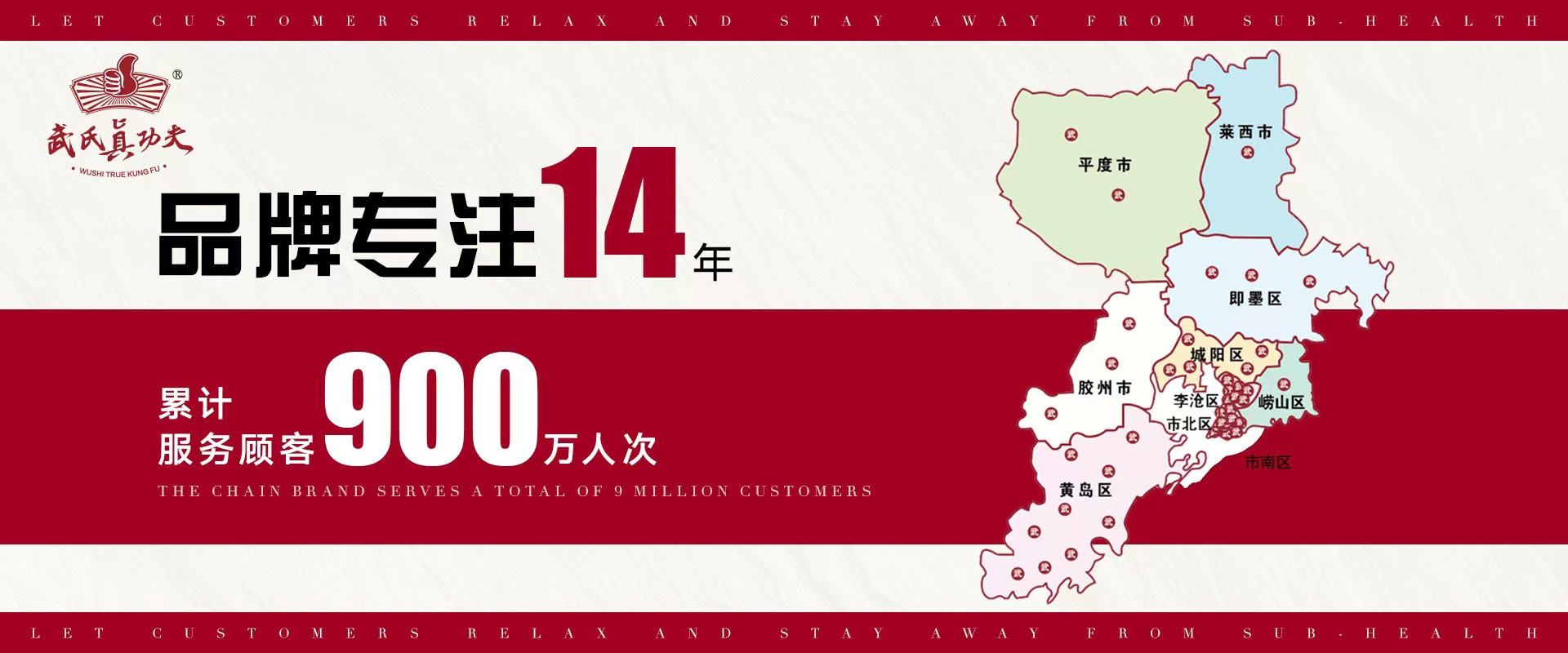 幸福岛企业,在岛城经营12年有余,旗下武氏真功夫是一家专业的足疗、推拿、采耳、SPA、泰式养生连锁品牌,现有线下门店49家,总营业面积达两万平方米,累计服务顾客800多万人次。多年以来,秉承着尽心竭力、无微不至、突破自我、互助共进的价值观;以让顾客身心放松远离亚健康,让伙伴过上更富有快乐的生活为使命;以成为养生行业的领军品牌,成为从业者的终生事业平台为愿景。
