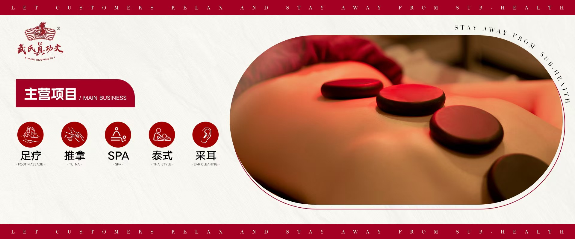 青岛武氏真功夫企业管理有限公司,是一家集理疗、SPA、泰式、养生于一体的连锁店管理公司,总部位于山东青岛。公司已有线下门店49家。 总营业面积达两万平方米,累计服务顾客800多万人次。