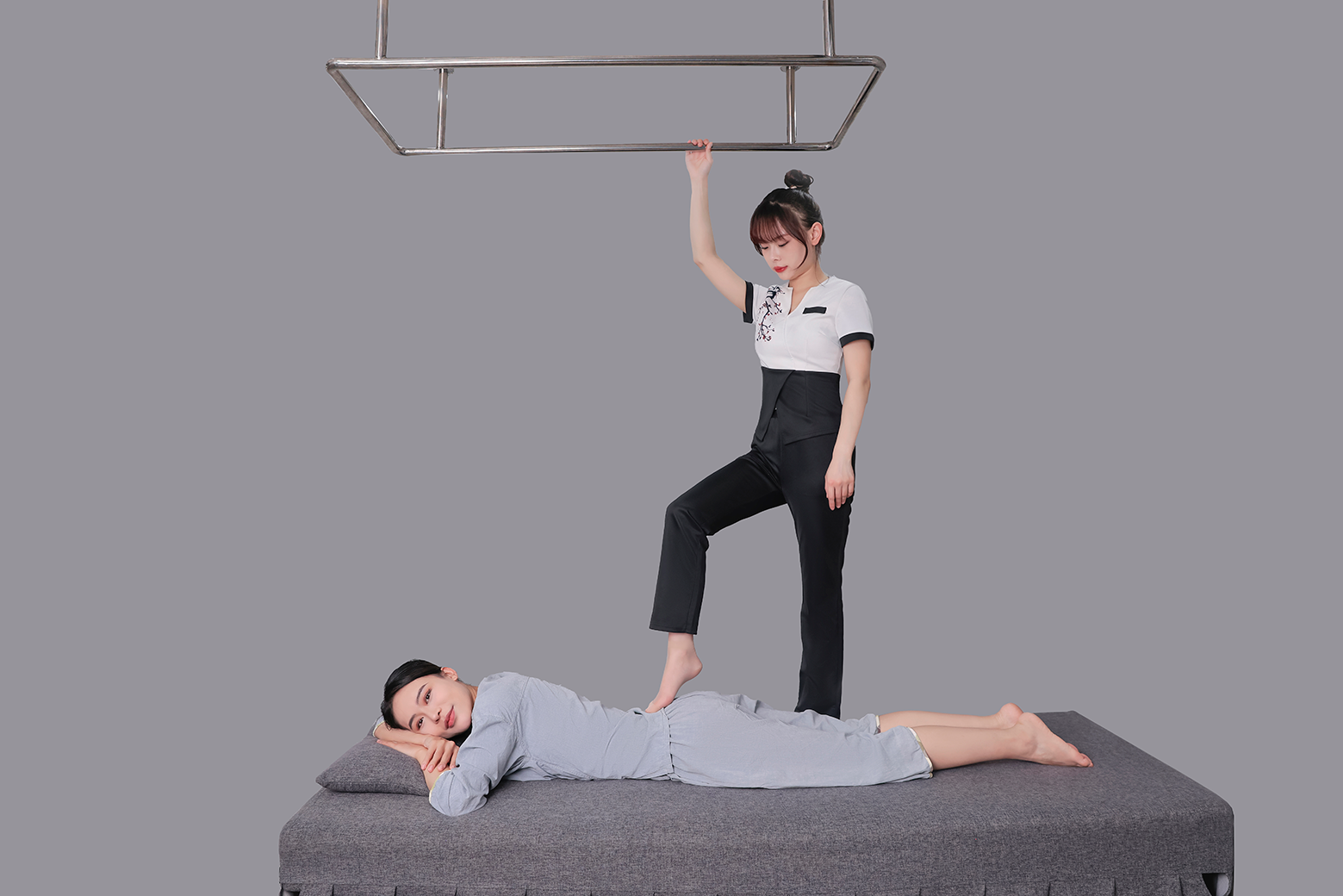 踩背是一种传统按摩方式,按摩师以足部为施力点,通过控制身体姿势、力度和节奏,利用体重产生不同压力,对背部肌肉、骨骼精准施力,能有效放松背部、肩部及腰部紧张肌肉,缓解酸痛与僵硬感,减轻身体疲劳。